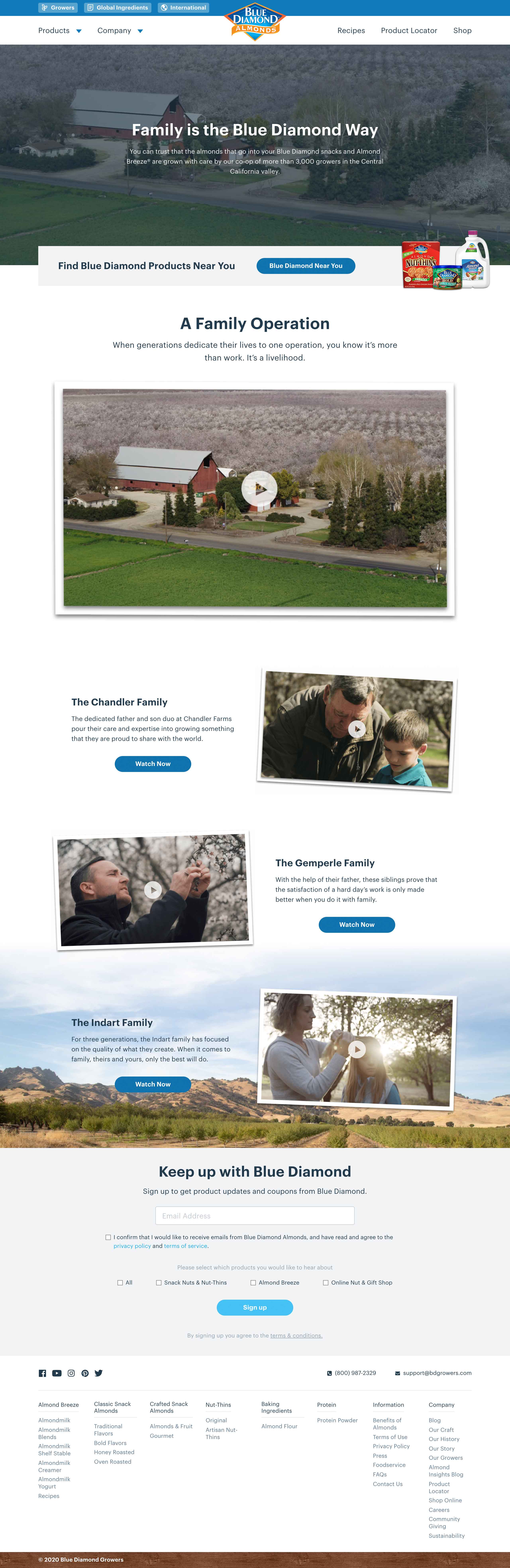 For over 100 years, Blue Diamond has been growing and distributing the best almonds and almond products around. As a co-op consisting of 3,000 growers spanning the entire Central Valley of California, Blue Diamond has made a name for themselves as the “Almond People.”